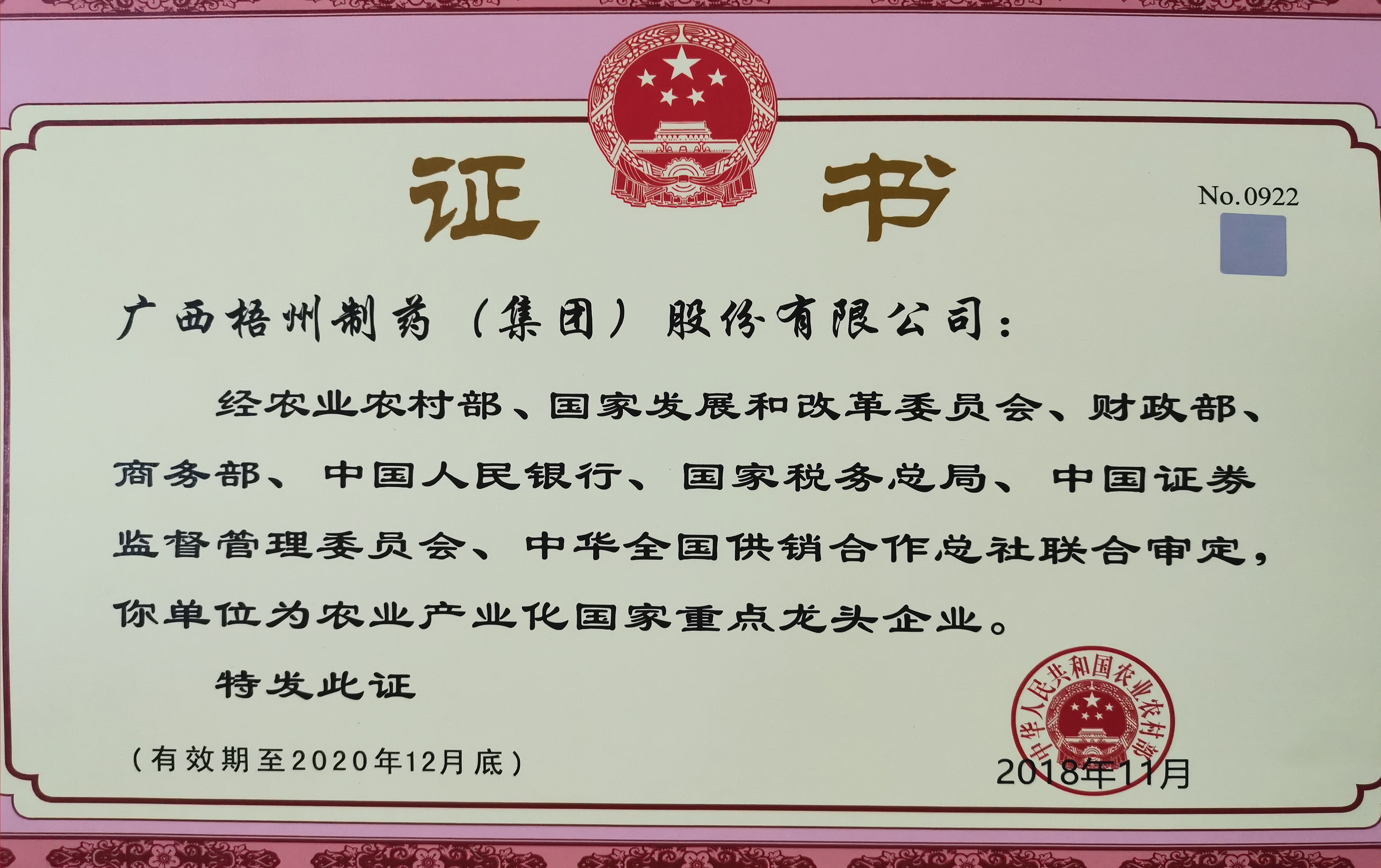 經農業農村部、國家發展和改革委員會、財政部、商務部、中國人民銀行、國家稅務總局、中國證卷監督管理委員會、中華全國供銷合作總社聯合審定,評為農業產業化國家重點龍頭企業。