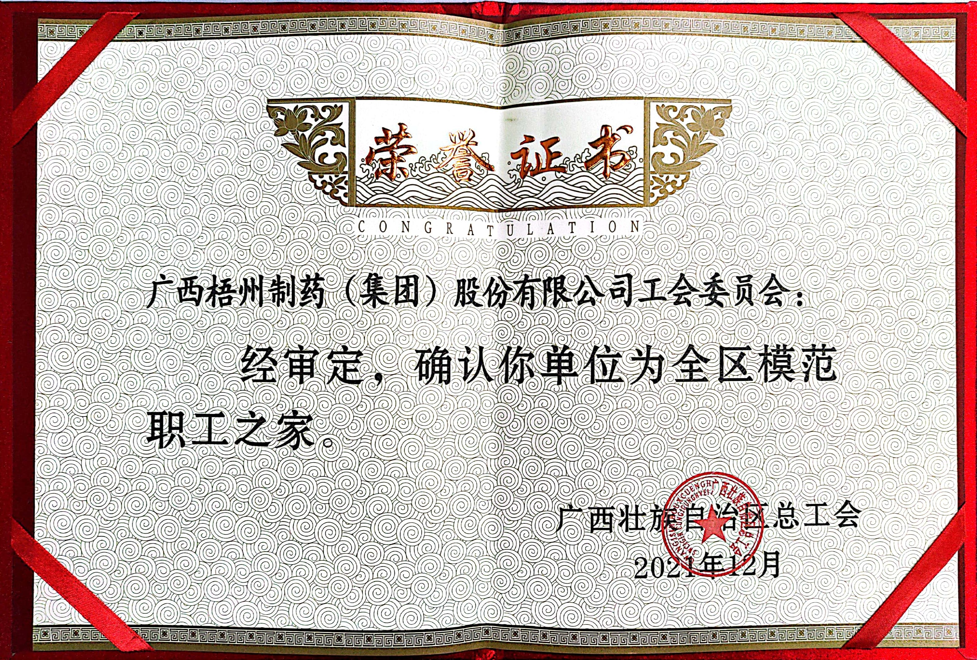 2021年榮獲全區模范職工之家稱號