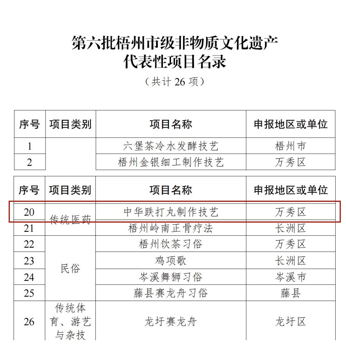 近日,梧州市人民政府公布了梧州市第六批非物質文化遺產代表性項目名錄,梧州制藥的中華跌打丸制作技藝項目成功入選。