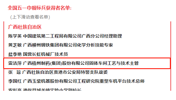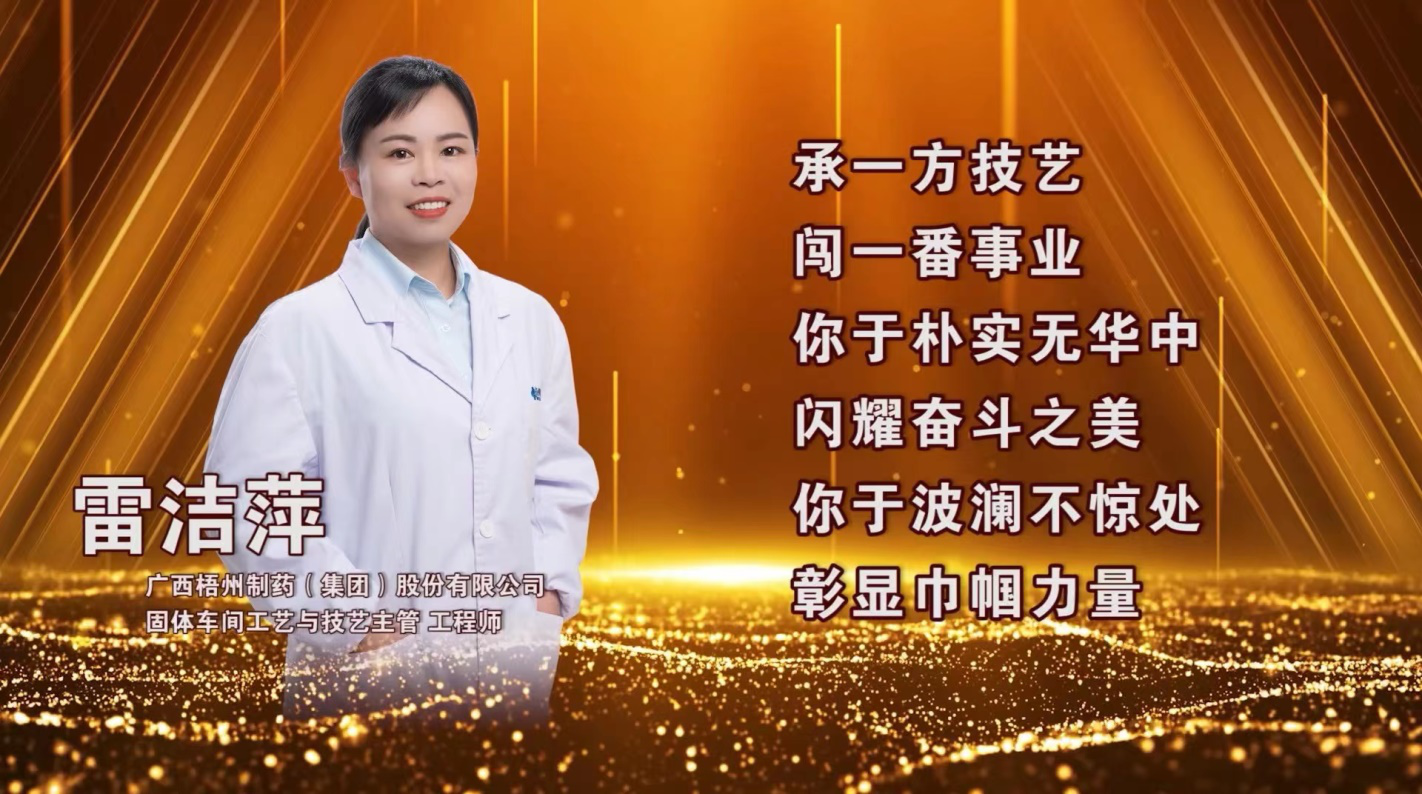 近日,中華全國總工會在北京隆重召開2023年全國五一巾幗獎表彰大會,大會表彰了450個全國五一巾幗標兵崗、450名全國五一巾幗標兵。梧州制藥固體車間工藝與技術主管、中華跌打丸制作技藝“非遺”傳承人雷潔萍榮獲“全國五一巾幗標兵”稱號。其所在的固體車間于2021年度曾榮獲 “全國巾幗文明崗”榮譽稱號,她們巾幗不讓須眉,立足崗位履職盡責,把智慧和汗水奉獻在崗位,為企業快速發展作出了積極貢獻,充分發揮了“半邊天”不可替代的作用。