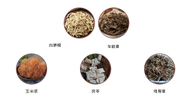 臣藥:白茅根、車前草、玉米須、茯苓、雞骨草