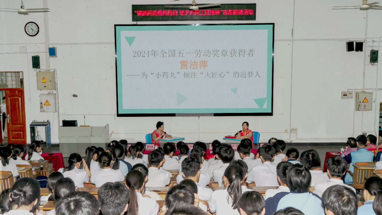 近日,在梧州市第一中學,一場別開生面的“巾幗勞模進校園”開講了,由中共梧州市委員會老干部局主辦的“銀齡同話梧州歷史 老少共傳工匠精神”志愿服務活動,梧州制藥固體車間工藝與技術主管雷潔萍受邀作為宣講代表出席活動。