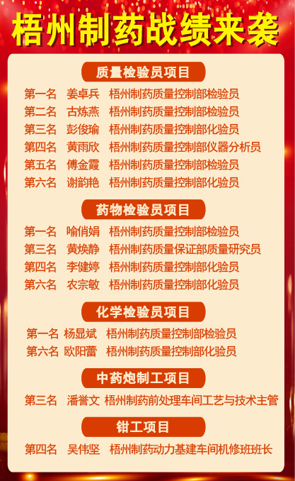 3金1銀3銅!梧州制藥職工 秀絕活 展風采 創佳績