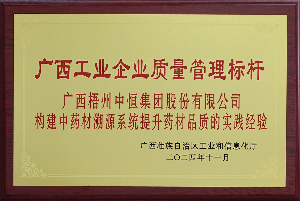 廣西梧州制藥(集團)股份有限公司(構建中藥材溯源系統提升藥材品質的實踐經驗)榮獲廣西工業企業質量管理標桿