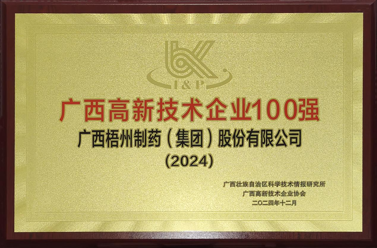 近日,標志著“2024年廣西高新技術企業百強”榮譽的官方牌匾,正式送達廣西梧州制藥(集團)股份有限公司(以下簡稱:梧州制藥)。這不僅為此次評選畫上圓滿句號,也意味著梧州制藥成功實現了自2023年以來的連續兩年蟬聯,充分彰顯了其穩固的創新優勢和行業競爭力。
