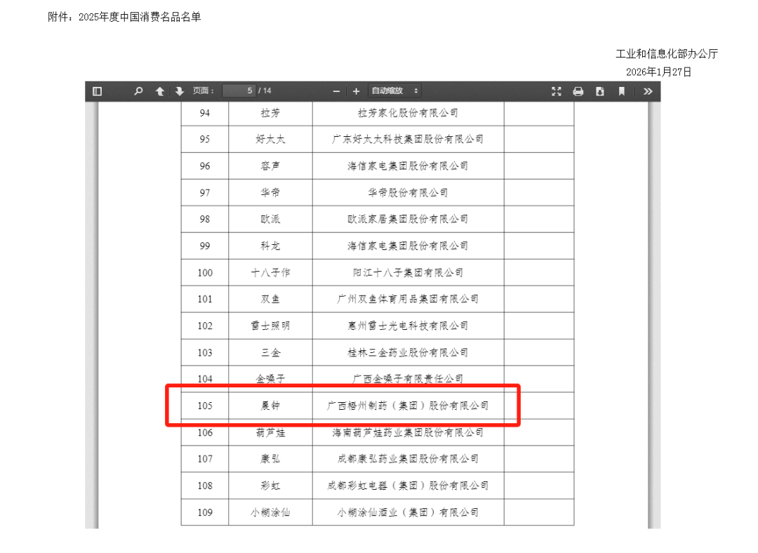 國家級認可!梧州制藥“晨鐘”品牌實力入選2025年度中國消費名品名單