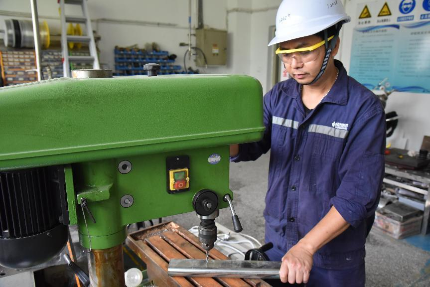 易健華是固體車間維修班的一名維修工,自2008年加入梧州制藥以來,先后在多個車間擔任電工、維修工,由于他的維修技術過硬,大家都親切地笑稱他是一名手到病除的“設備醫生”。
