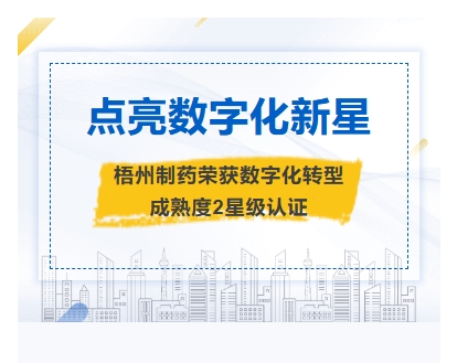 點亮數字化新星梧州制藥榮獲數字化轉型成熟度2星級認證摘要近日,數字化轉型貫標工作委員會公布第十九批數字化轉型貫標星級評估結果,廣西梧州制藥(集團)股份有限公司憑借扎實的轉型實踐與顯著成效,成功獲評數字